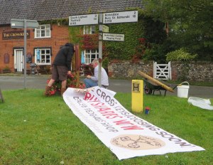 Banners going up